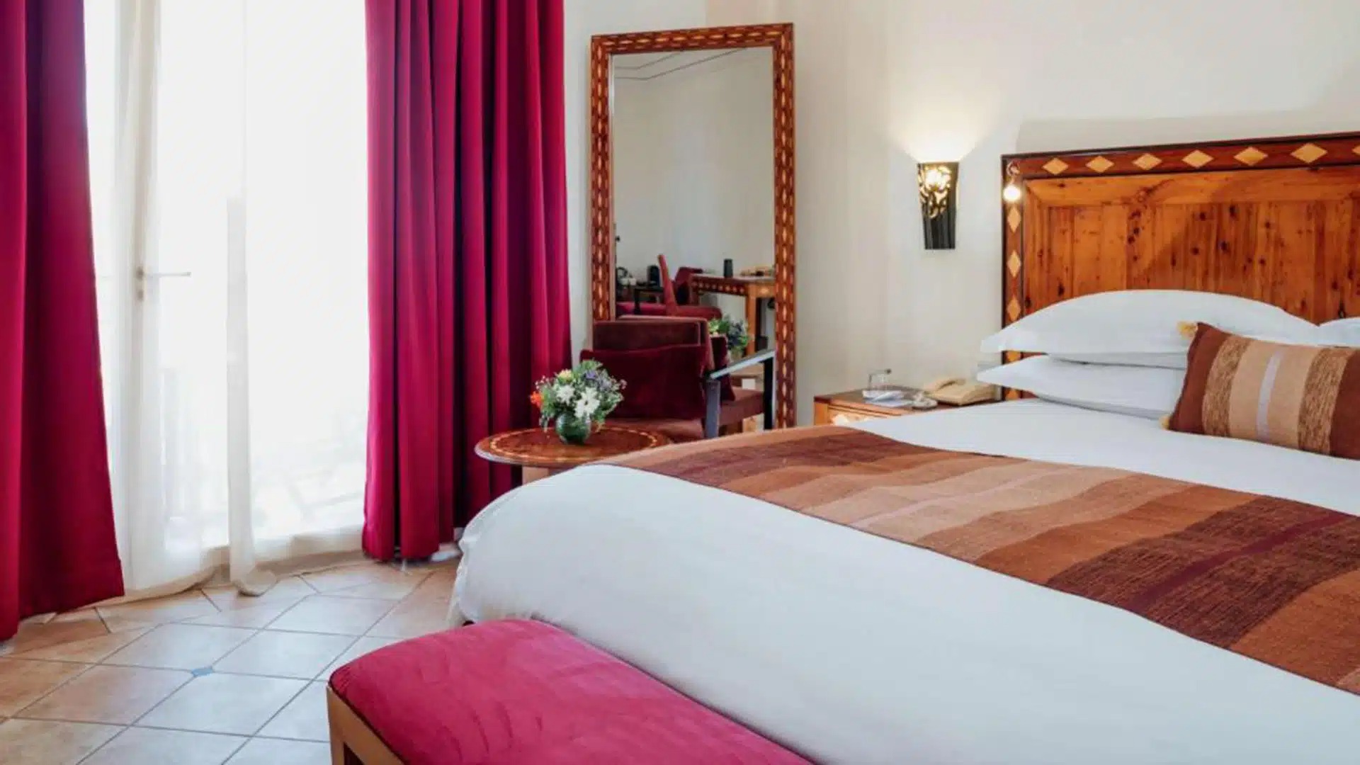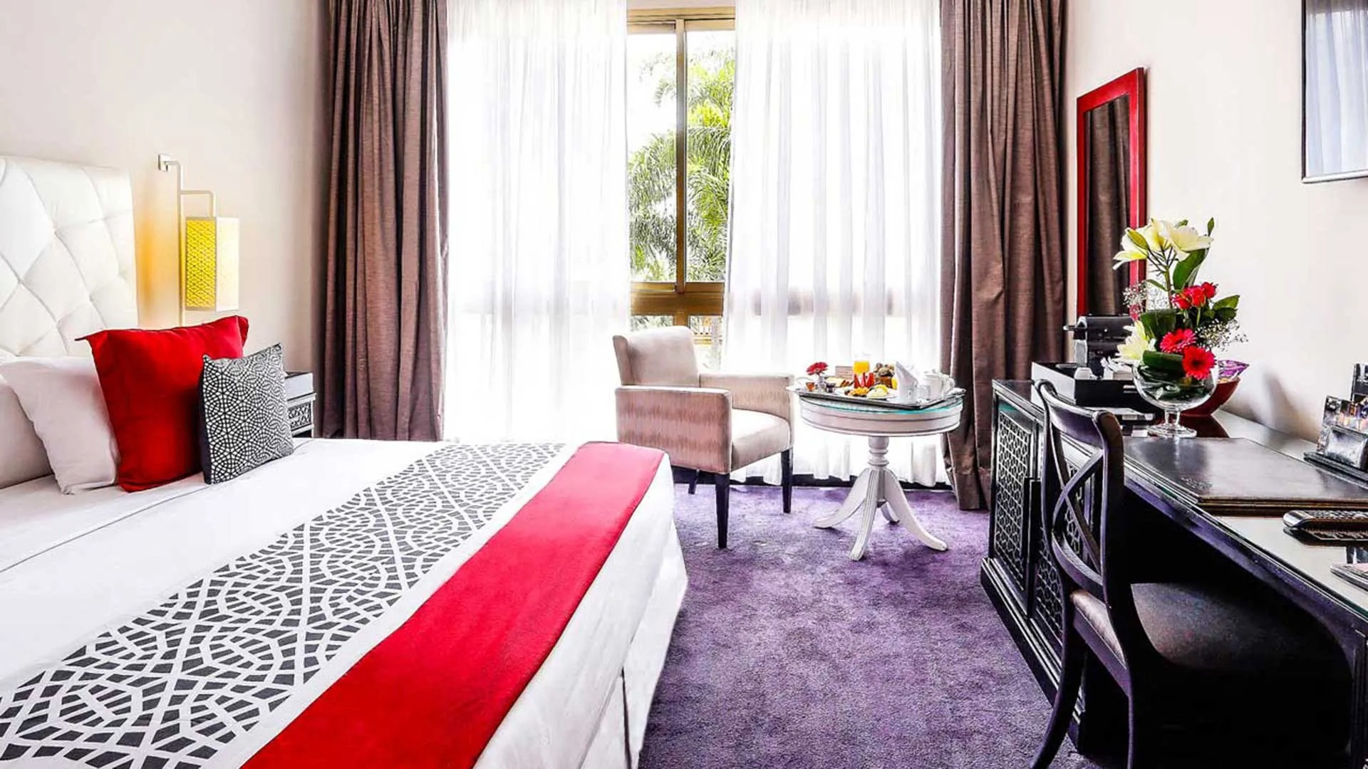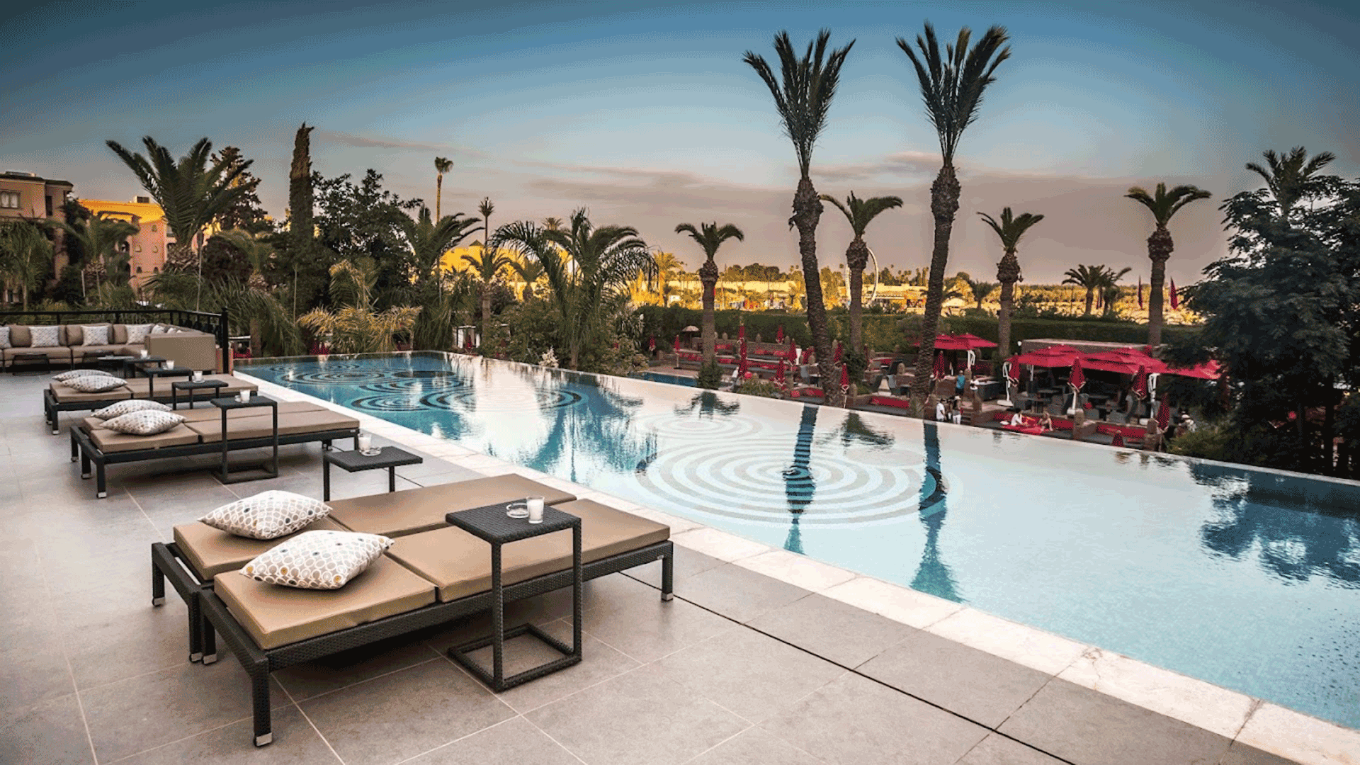 The ultra-chic Sofitel Marrakech hotel invites guests into a world of comfort and luxury, combining upscale Moroccan charm with French elegance. Sumptuous rooms feature elegant decor, panoramic windows, a private shaded terrace, and an array of modern amenities. From the outdoor swimming pool and lush gardens to the spa and gym, the Sofitel Marrakech provides a sanctuary of serenity and ease to fulfill every traveler’s dreams.