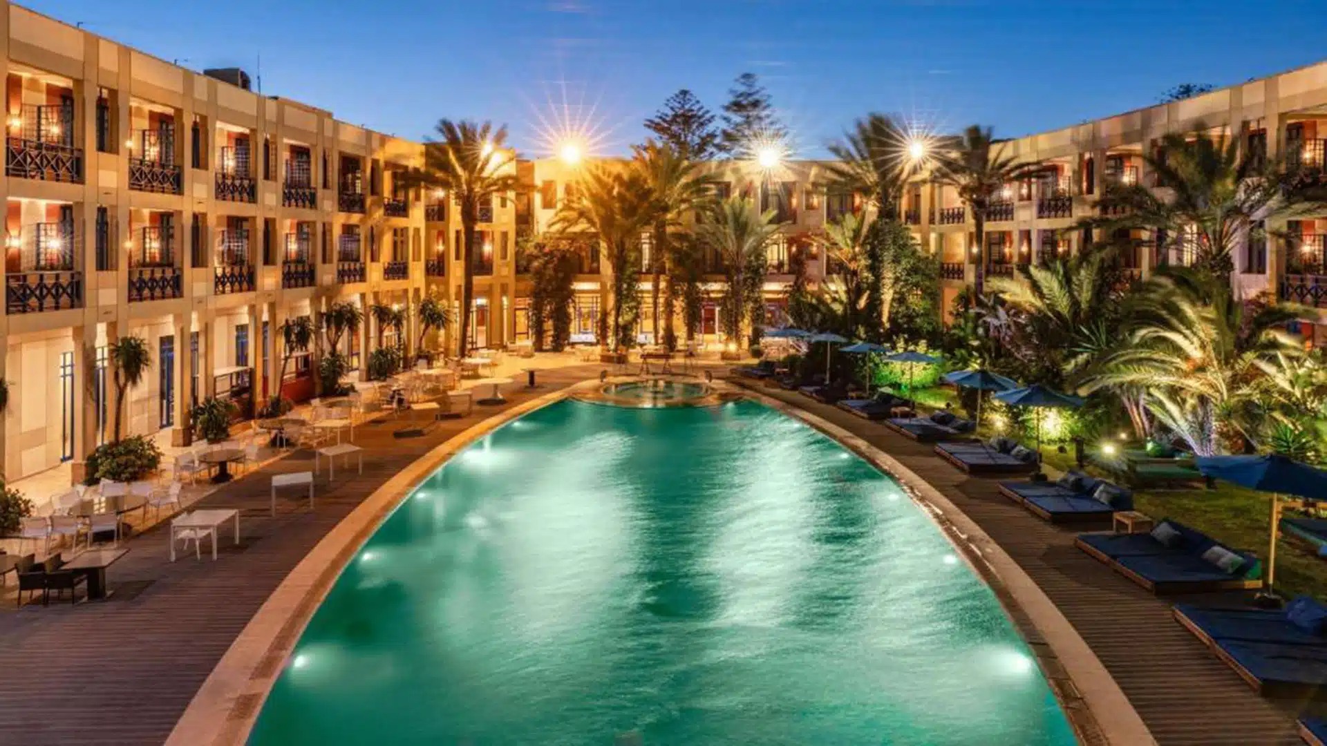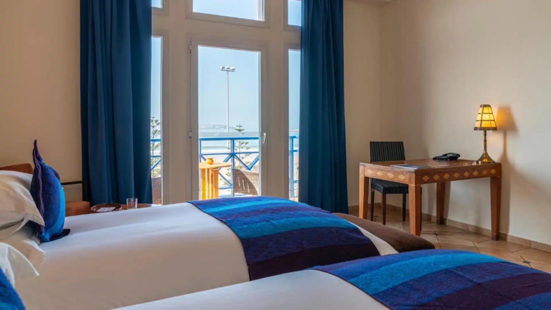 Medina Essaouira Thalassa Sea & Spa is a boutique oceanfront hotel blending Moroccan charm and serenity. Featuring modern, comfortable rooms with stylish touches, a spa, pool, and fitness center, it offers relaxation and easy access to the beach, the medina, and local attractions.