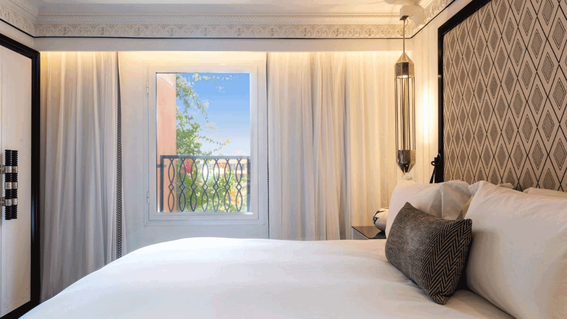 Built in 1912, the Tour Hassan Palace Hotel is a tribute to the splendor of traditional Moorish architecture with its geometric tile work, arched doorways, fountains, and luscious garden spaces, and fountains. The centrally located hotel features charming rooms with stylish furniture and touches of rich color, as well as several restaurants, Andalusian gardens, a pool, spa, and fitness center.