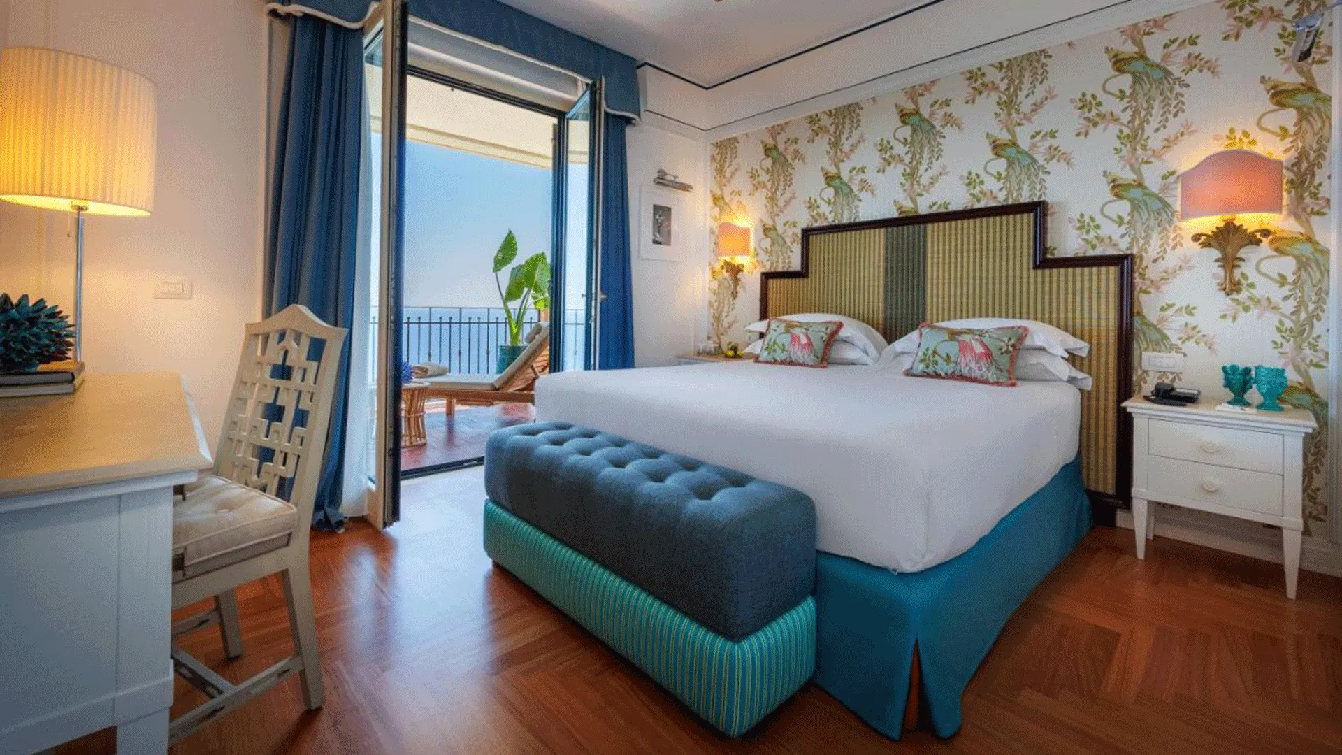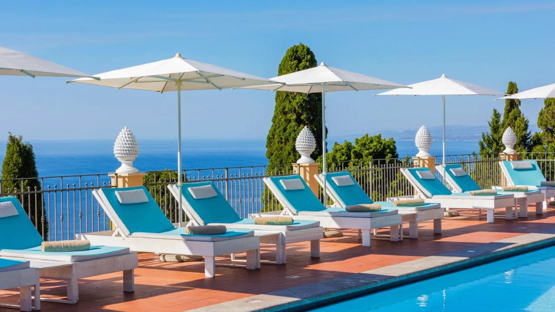 Suspended between sky and sea, the Grand Hotel San Pietro offers an unparalleled panoramic view of the Ionian Sea, surrounded by a lush Mediterranean garden of citrus and ancient olive trees. A finely restored early 1900s villa, the hotel stands out for its timeless elegance and modern Sicilian-style design with colorful contemporary touches. The rooms, pool, restaurants, gym, and spa combine to provide an unforgettable Sicilian experience.