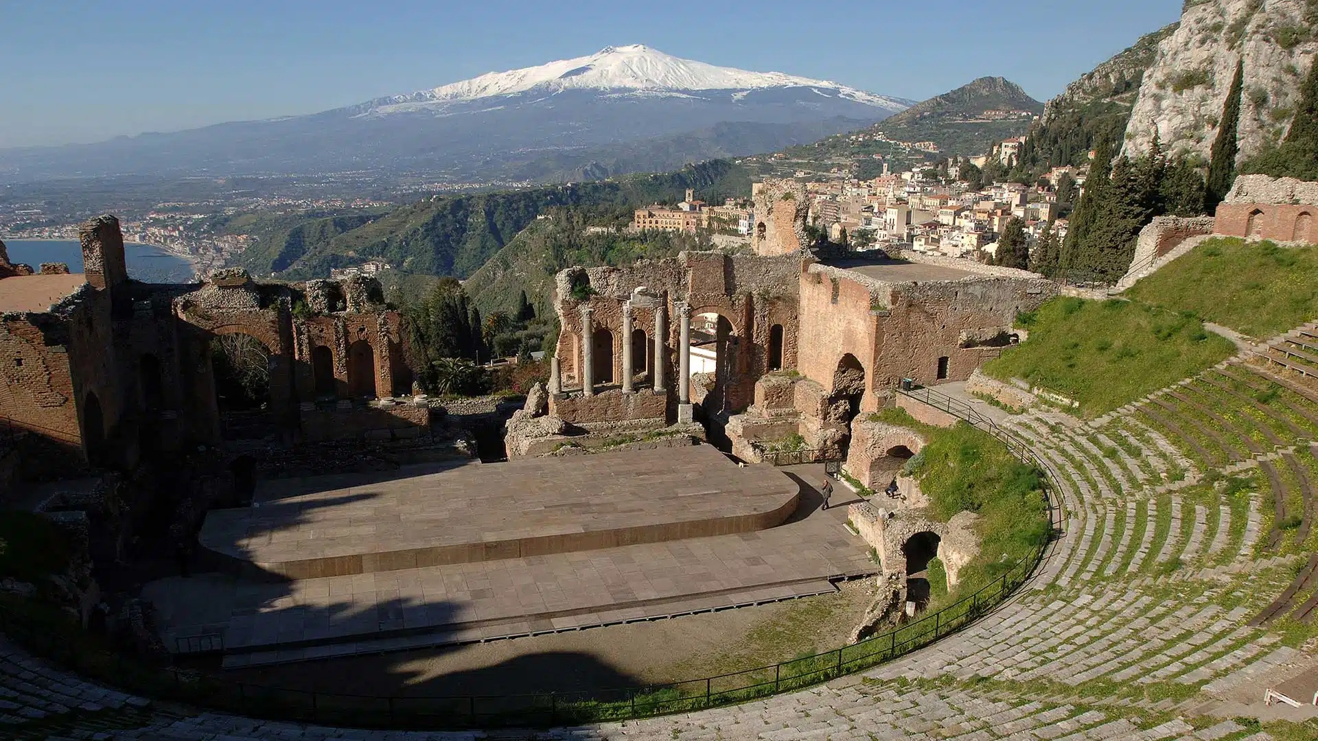 This morning, we take a walking tour of picturesque Taormina that includes the town’s former Jewish quarter, as well as its magnificent Greek theater, an incredibly well-preserved 3rd-century BCE amphitheater with stunning views of the sea and Mount Etna.